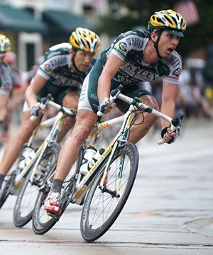 The wheels greatly affect the performance of a racing bike. The rim of the wheel can be shaped for greater aerodynamic efficiency making a triangular cross-section to form a teardrop with the tyre.