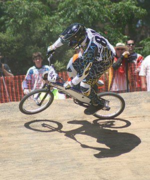 The course is usually flat, about 6m-8m wide and has large, banked corners that help the riders maintain speed. The sport of BMX racing is facilitated by several regional and international sanctioning bodies. They provide rules for governing the conduct of the races, specify age group and skill-level classifications among the racers, and maintain points-accumulation system over the racing season. The sport is very family oriented and largely participant-driven, with riders ranging in age from 3 to 60, and over. Professional ranks exist for both men and women, where the age ranges from 15 to 40 years.