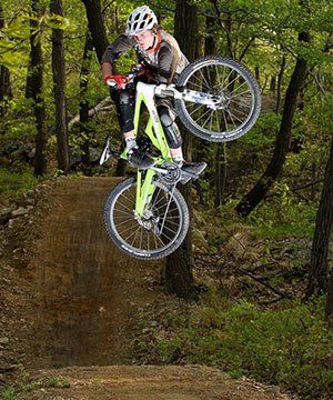 Downhill races are time trials events where riders ride courses separately, racing the clock. They can have technical sections like rock gardens as well as jumps and drops.
